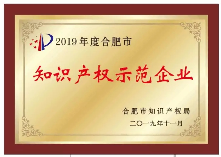近日,安徽k8凯发荣获“2019年度合肥市知识产权示范企业”称号。