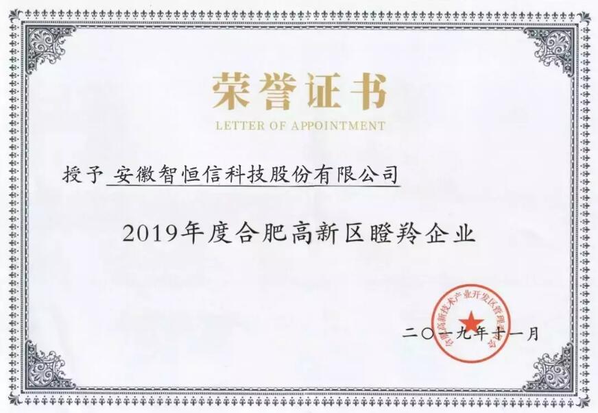 11月20日,合肥高新区高成长企业发布会在管委会一楼报告厅举行,会上发布了《合肥高新区2019年度高成长企业榜单及发展报告》,安徽k8凯发获颁2019年度合肥高新区瞪羚企业。